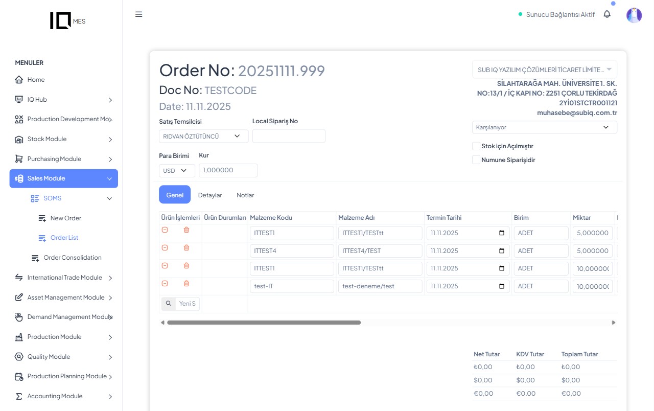 Modern işletmeler için sipariş yönetimi, sadece sipariş girişi yapmak değil; tedarikçiden müşteriye uzanan tüm akışı doğru yönetmek, kalite ve uygunluk kontrollerini sağlam bir zemine oturtmak ve üretim–stok–satınalma süreçlerini tek bir merkezden koordine etmektir.