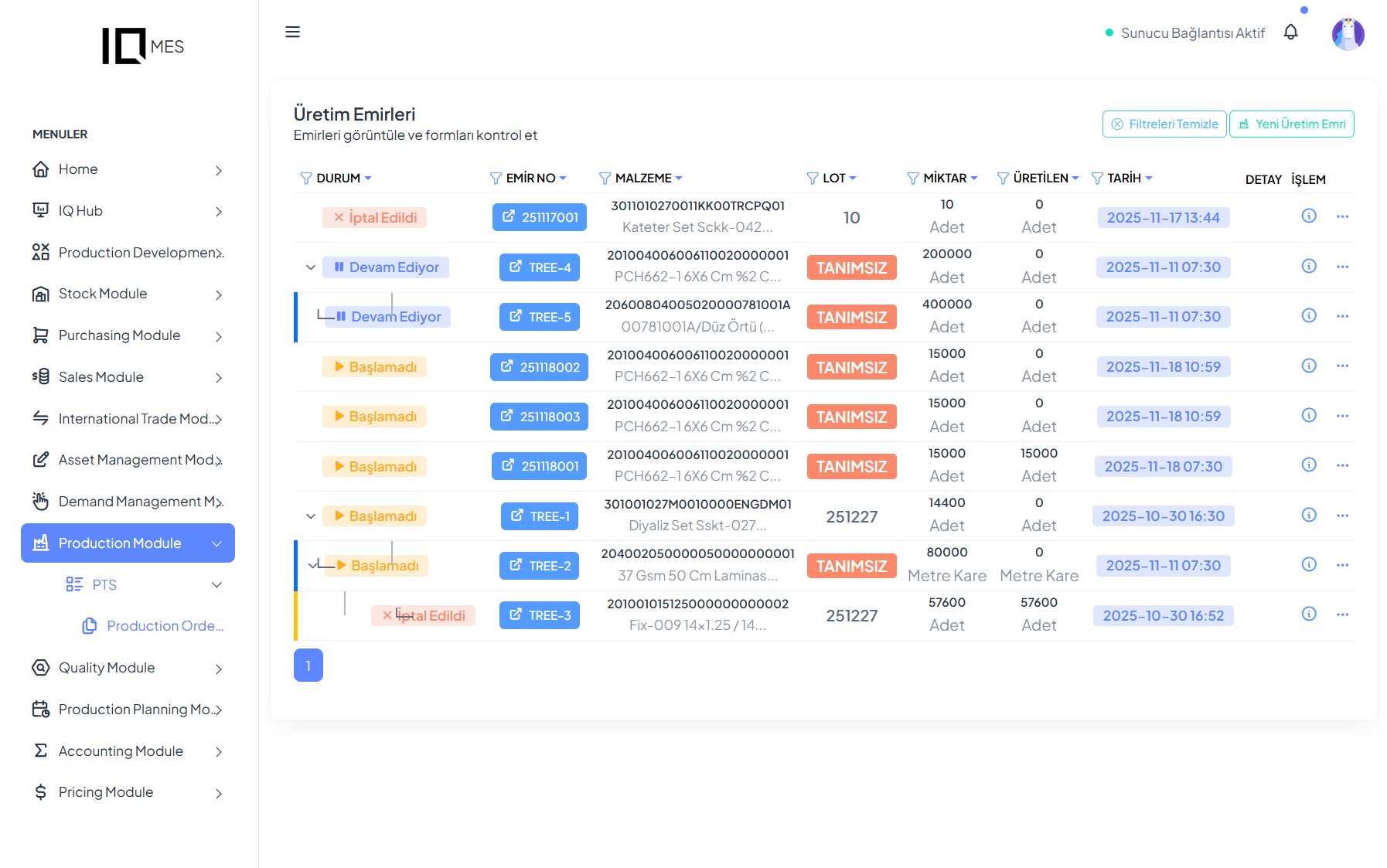 - Miktarsal ve süre bazlı üretimi aynı sistemden yönetin,