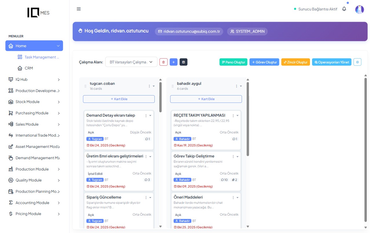Üretim yönetimi bir işletmenin kalbi ise, üretim planlama onun beyinidir. Üretim modülü sahadaki operasyonları yönetirken, üretim planlama modülü bu operasyonların ne zaman, hangi kapasiteyle, hangi kaynaklarla ve hangi önceliklerle gerçekleşeceğini belirleyen stratejik karar motorudur.